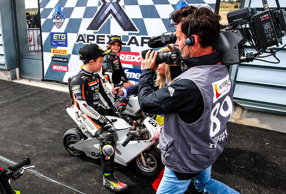 Cobertura audiovisual completa de competiciones, con estándares broadcast tipo MotoGP.